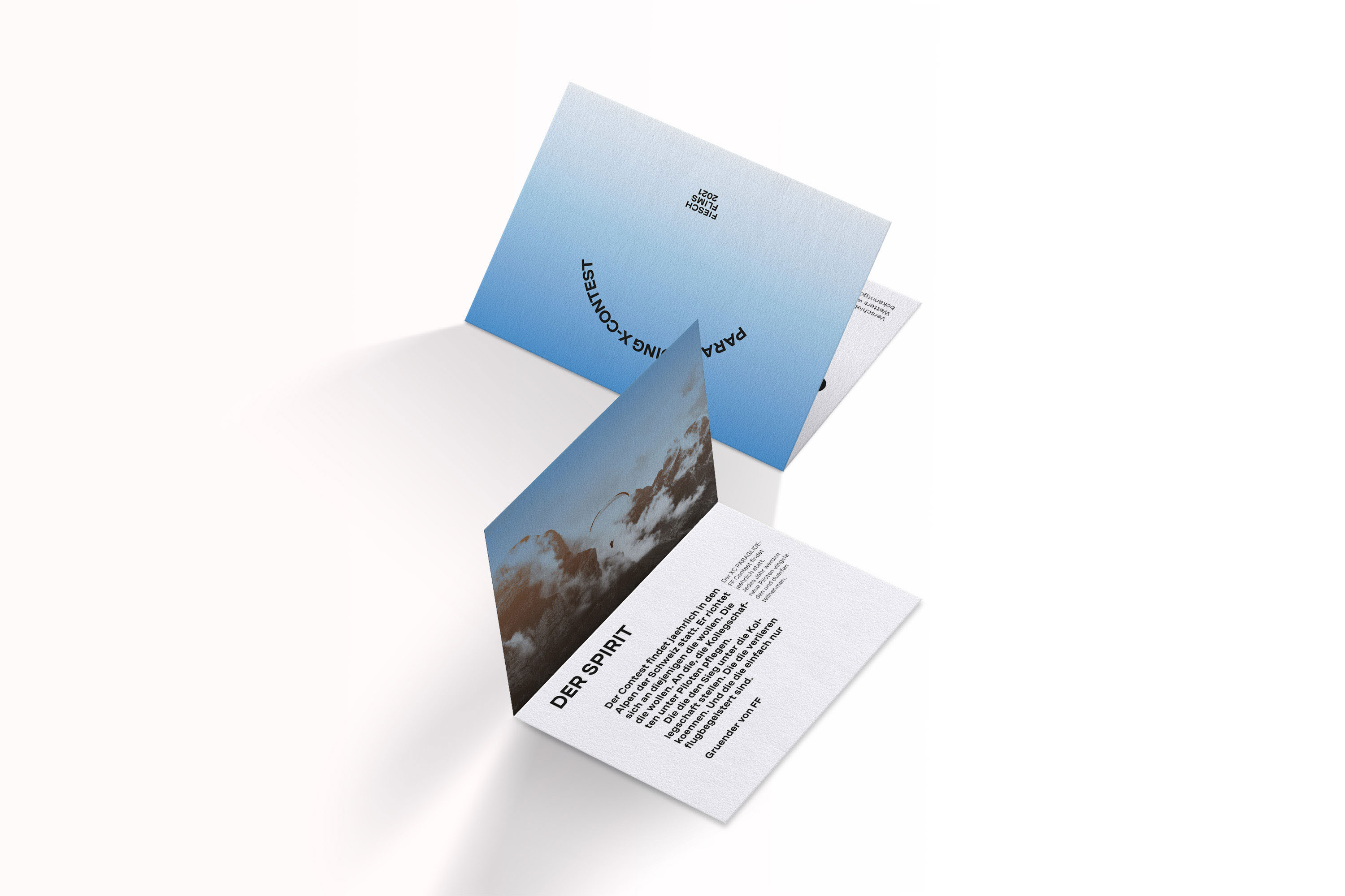Einer der wichtigsten Merkmale beim Fliegen ist der Horizont. Dieser wird hier zum Schlüsselelement der sich in Form eines Verlaufs durch die ganze Gestaltung zieht. Der Horizont eines perfekten Flugtages wird zur ‹Corporate Farbe›.